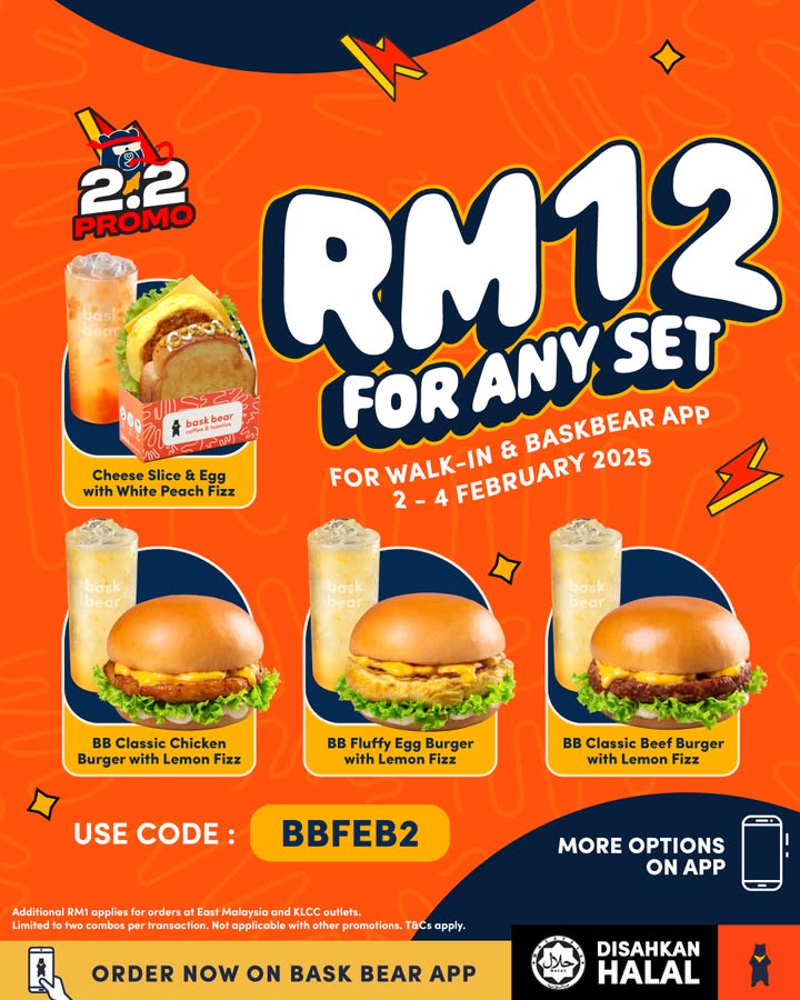Bask Bear’s 2.2 Promo is the ultimate deal for food lovers. With RM12 for 2 items, you can enjoy a variety of delicious options, from burgers to muffins. Available from 2nd to 4th February 2025, this limited-time offer is your chance to indulge without breaking the bank. Redeem it via the Bask Bear app or walk in today—happiness is just a bite away!