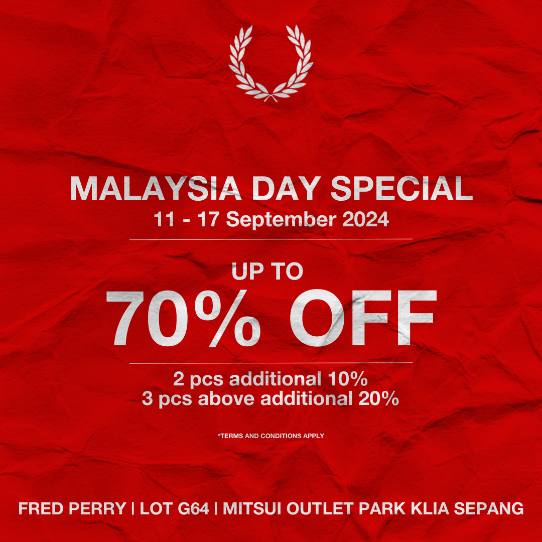 Celebrate Malaysia Day starting 11th September to 17th September 2024 with retail therapy at Fred Perry Mitsui Outlet Park, Sepang!
